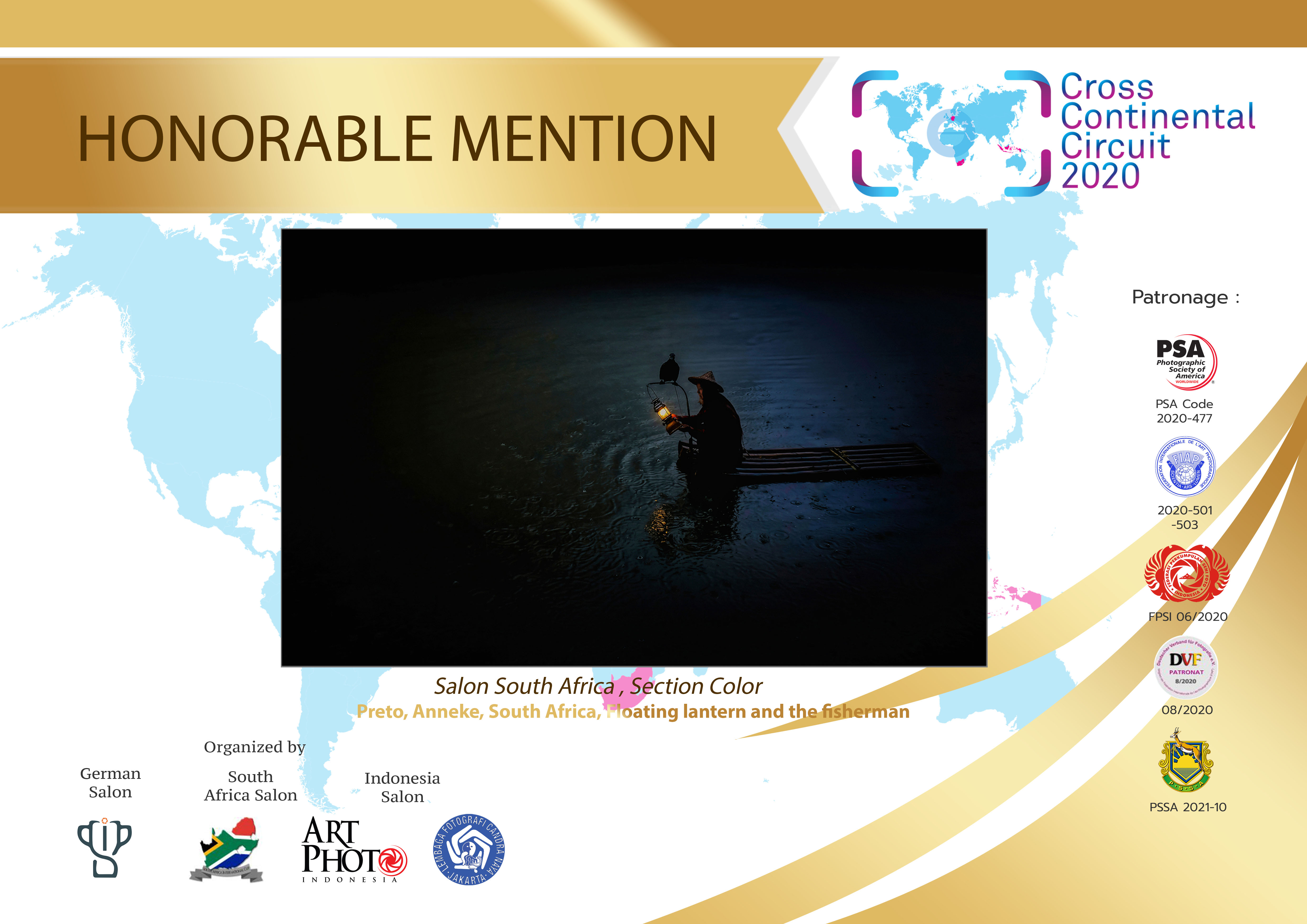 | Preto, Anneke | South Africa | Floating lantern and the fisherman | HM |